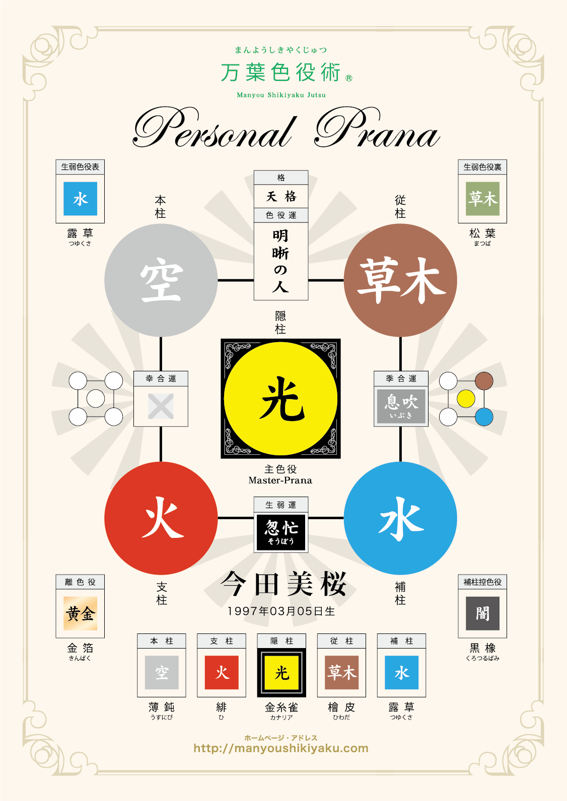 主色役【光】=明晰の人は、自らが輝くヒーローとなり、いつまでも子供心を忘れずに、如何なる難題にも挫けない無邪気なエンターテーナー