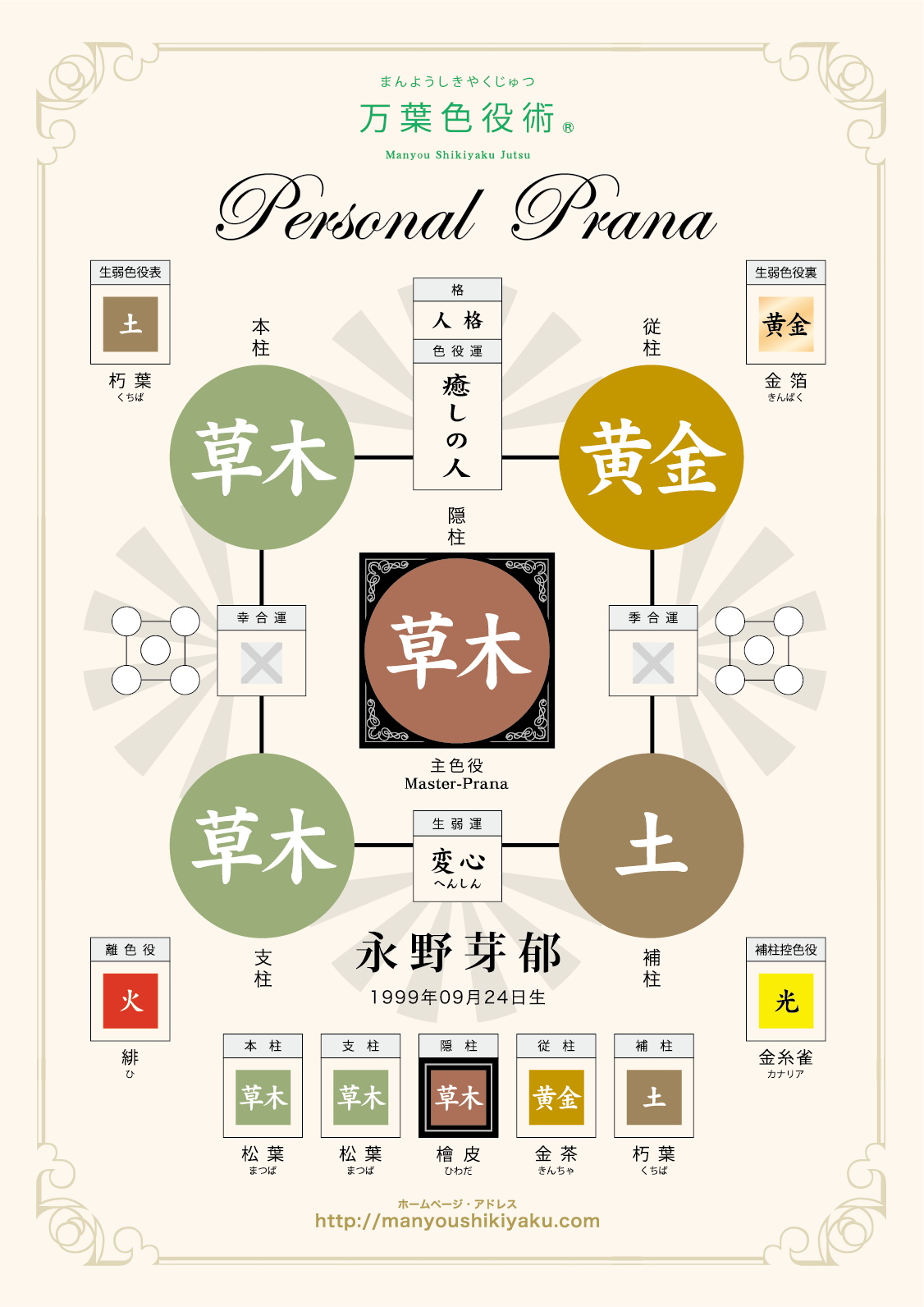 主色役【草木】=癒しの人は、意思疎通能力に優れ、樹木が営む光合成のように、互いの要と不要を入れ替える身心一如のセラピスト